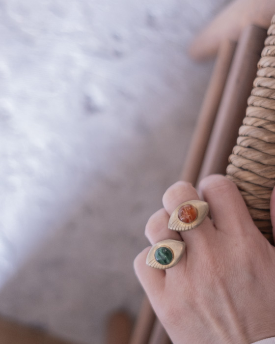 大きく目を見開き、物事の本質を見極め、内にある光を世界に投影する事で出来る自らの眼を表現したリング