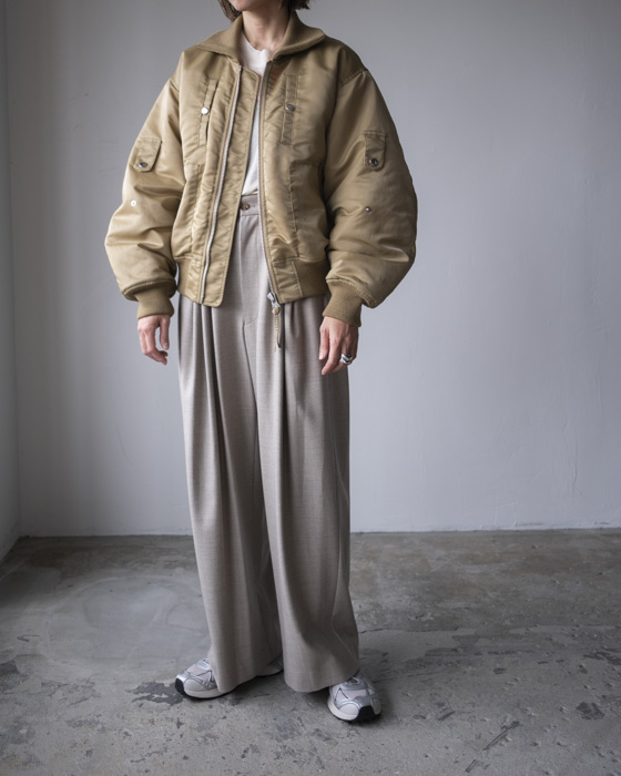 生地にはナイロン素材を使用し、ミリタリーらしい色味がスタイリングに深みを与え、秋冬のコーディネートを格上げしてくれます。軽やかで暖かく、どんな装いにもマッチする万能アウターです。