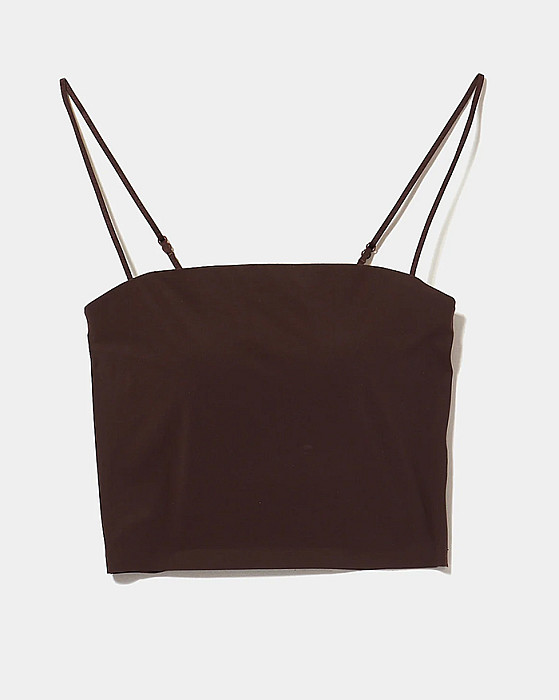 ミディレングスのチューブトップ。取り外し可能なショルダーストラップ付きでキャミソールとしてもベアトップとしても着用できます。ストラップは可変可能なデザインなのでワンストラップやバイアスラインや様々なデザインに変化させることができます。カップは3Dカップを採用し立体感のあるシルエットをキープします。