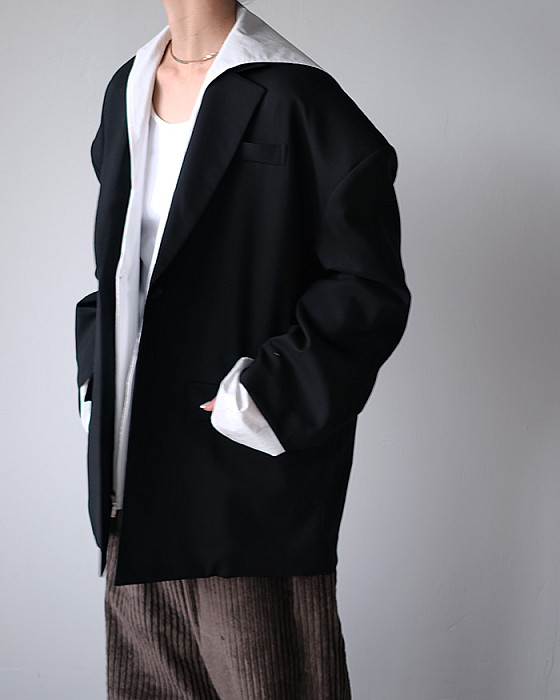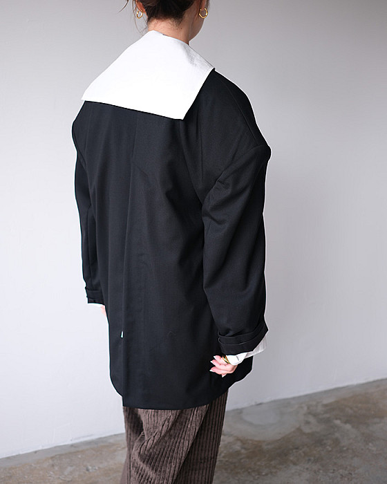 難しいと思われがちなセーラーカラーをフロントからはセーラーカラーにみえないさり気なさ、バックスタイルのセーラーカラーも少しコンパクトに甘すぎないデザイン設計。