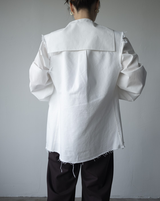 深めのVライン開きのZIPセーラーカラーシャツ。