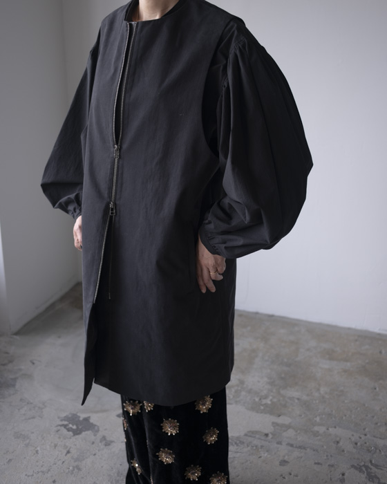 ブルゾンやジャケットの上からも羽織れるようにアームは大きめな作り。