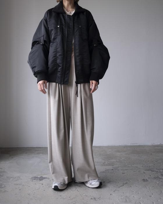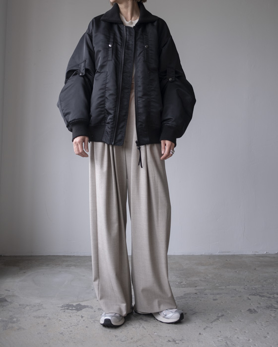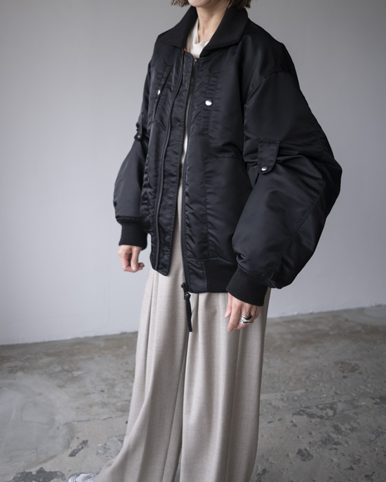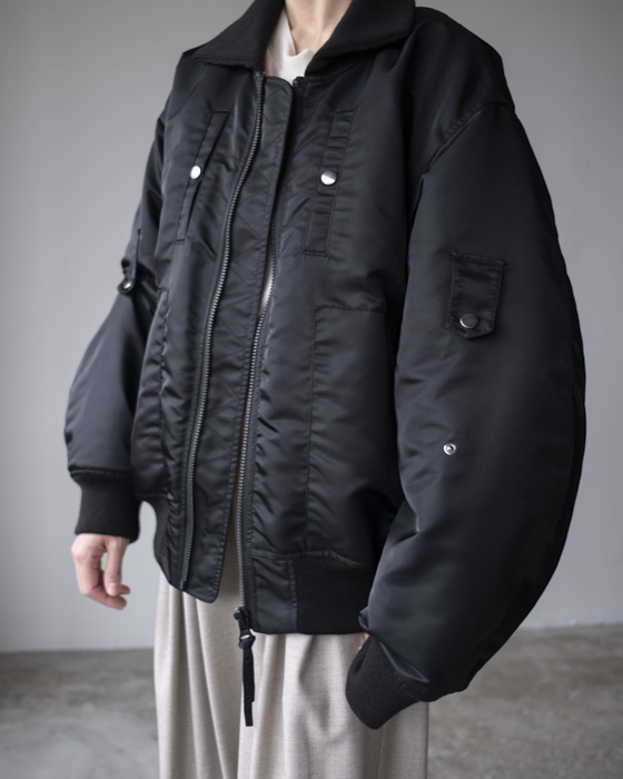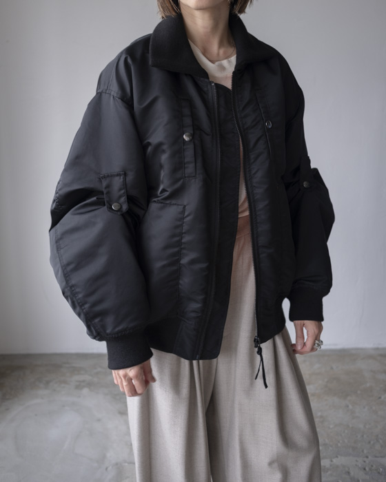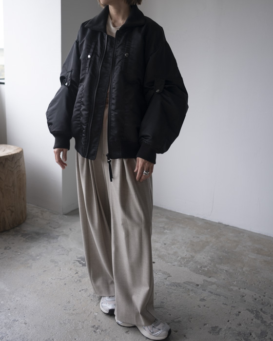 胸元や背面、サイドのポケットディテール、袖口・裾のリブ仕様など、機能性とデザイン性を兼ね備えたディテールが満載。袖のアームタブで表情を変えられるのもポイント。