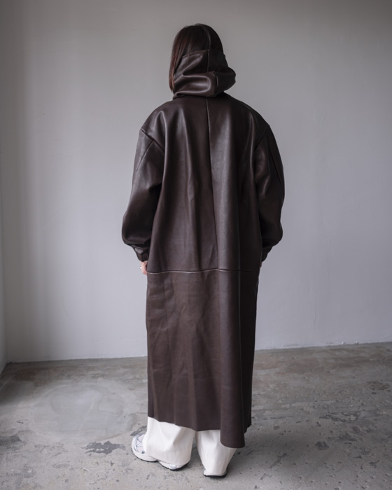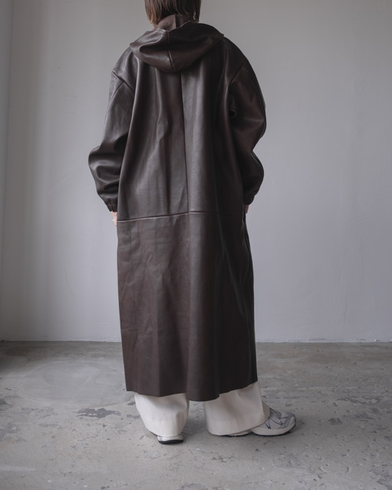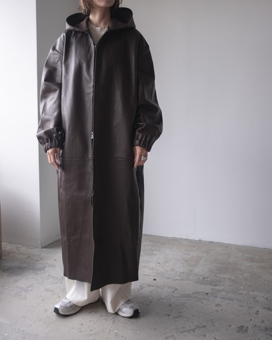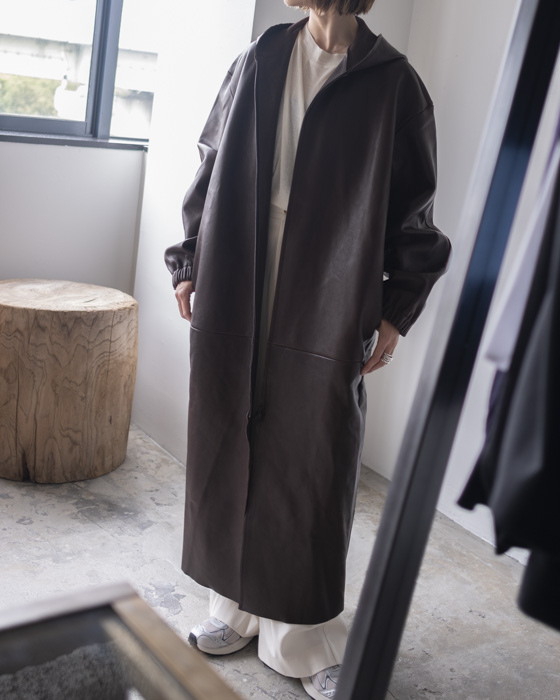羊革ならではのしなやかさと重厚感を堪能できる<ガブリエラ コール ガーメンツ>のコート。フード部分までファスナーがあしらわれているため、ハイネックのようにしたり、前裾のスリットをさらに深くしたりなど、開閉具合によってスタイリングのアレンジが可能です。ゴム入りでフィット感をプラスした袖口は冷たい風を通しにくいのもポイント。一点投入するだけで、装いがたちまちラグジュアリーに仕上がります。