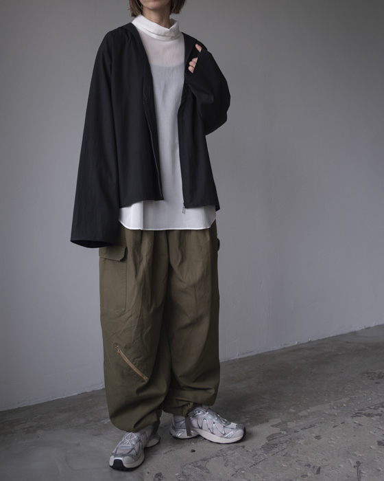 秋冬はジャケットやニットのインナーの重ね着もしやすく、晩夏や秋口は、羽織ものとしても重宝する万能アイテム。