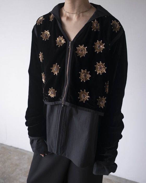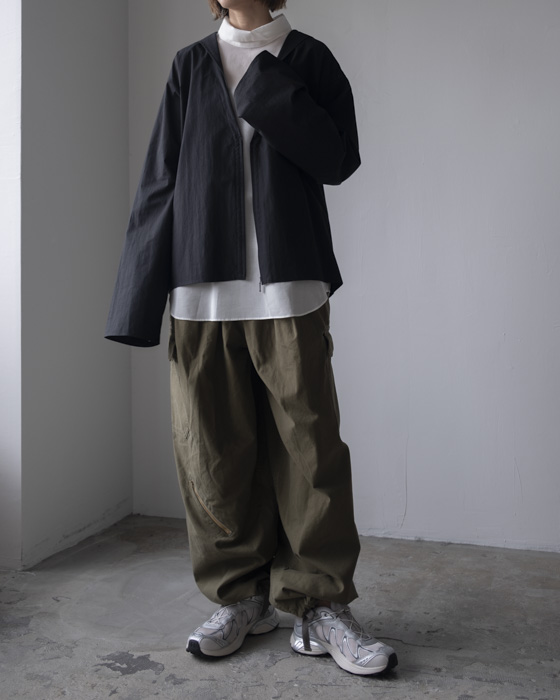 深めのVライン開きのZIPセーラーカラーシャツ。