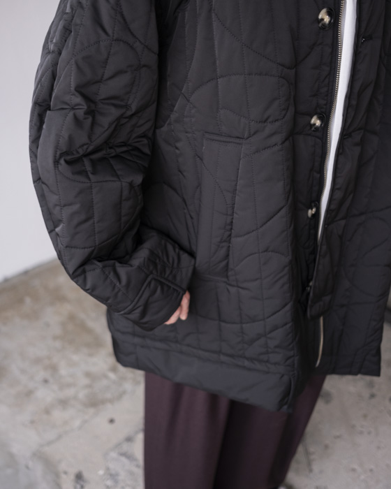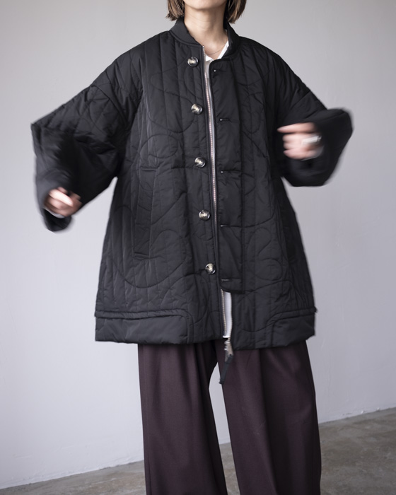 (アルネ・ヤコブセン「eggチェア」)袖口や裾にはリブを使用せずに共生地で仕上げることでカジュアル見えせずにエレガントに着用していただけます。