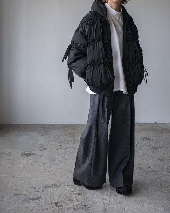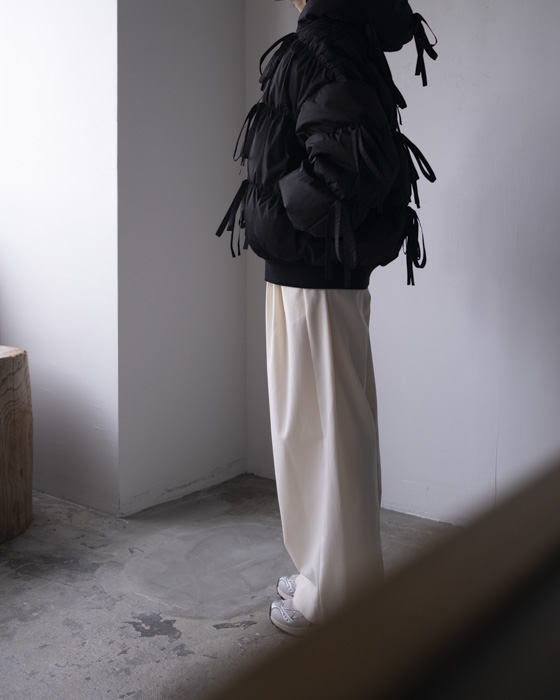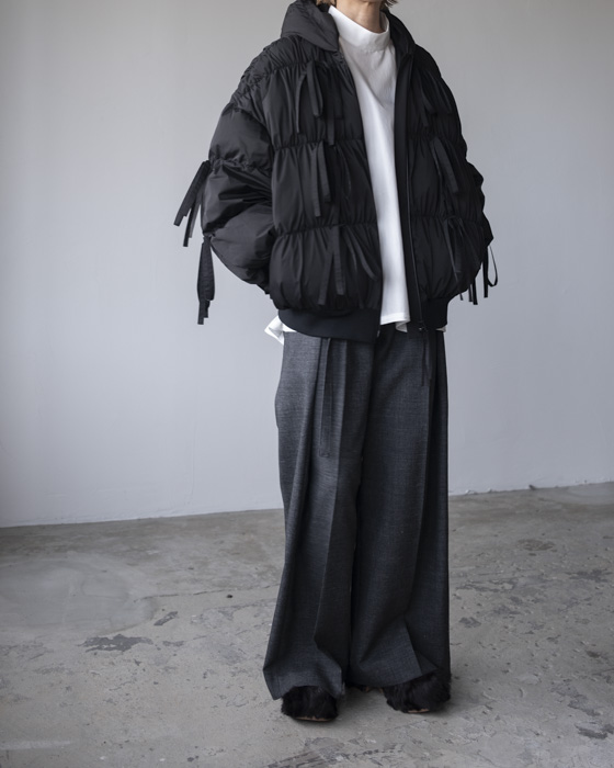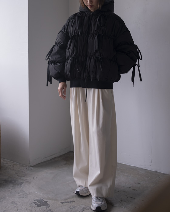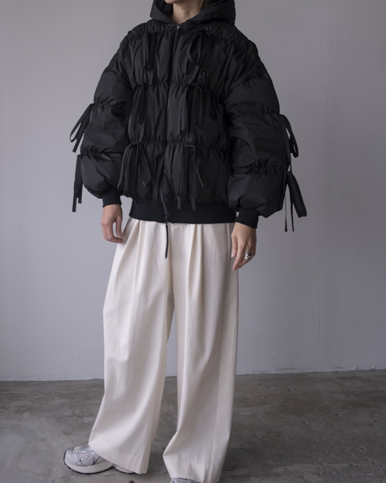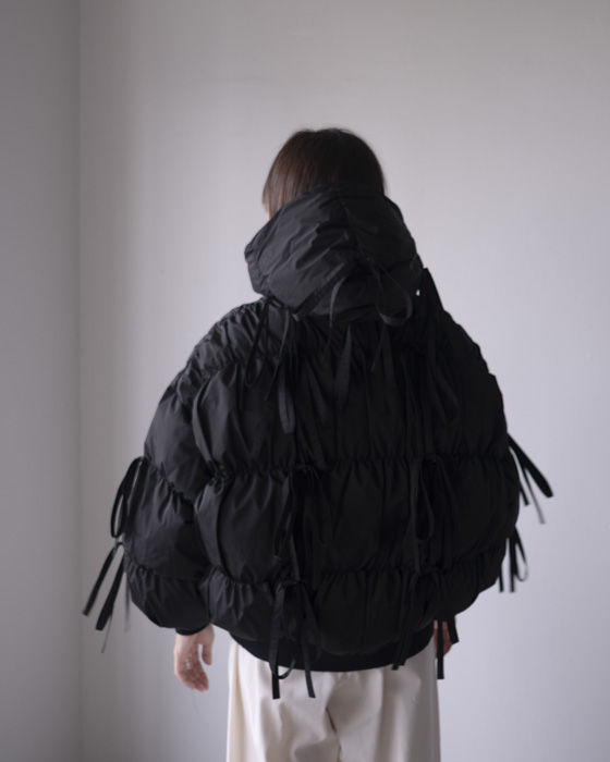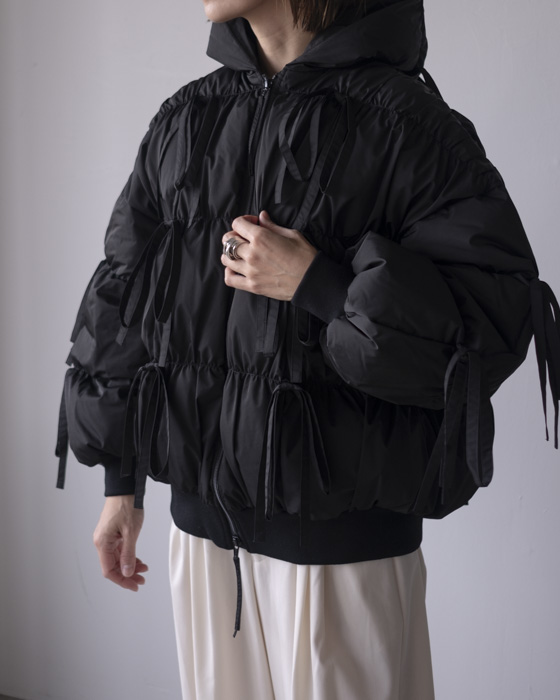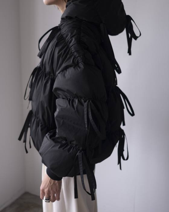 リボンが付いた椅子のクッションをイメージしたダウンジャケット。