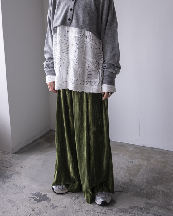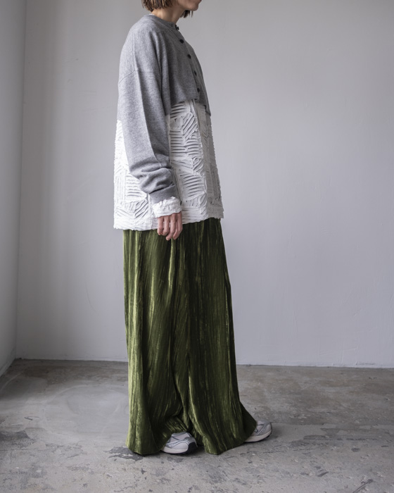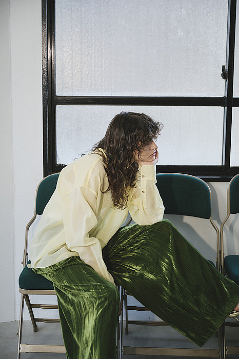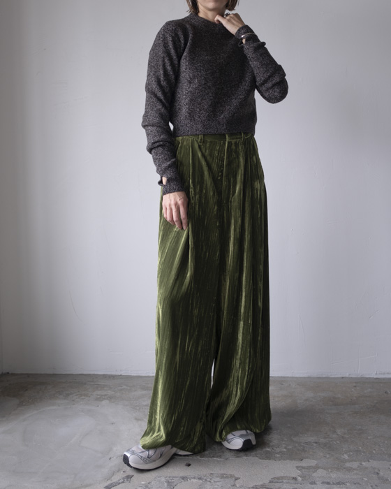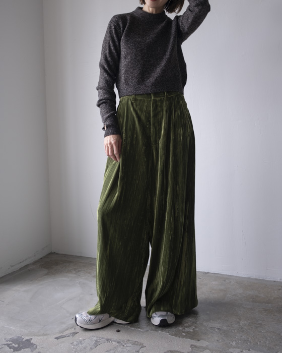 贅沢なボリュームのあるパンツは、動きもありスタリングのメインにもなるアイテムです。