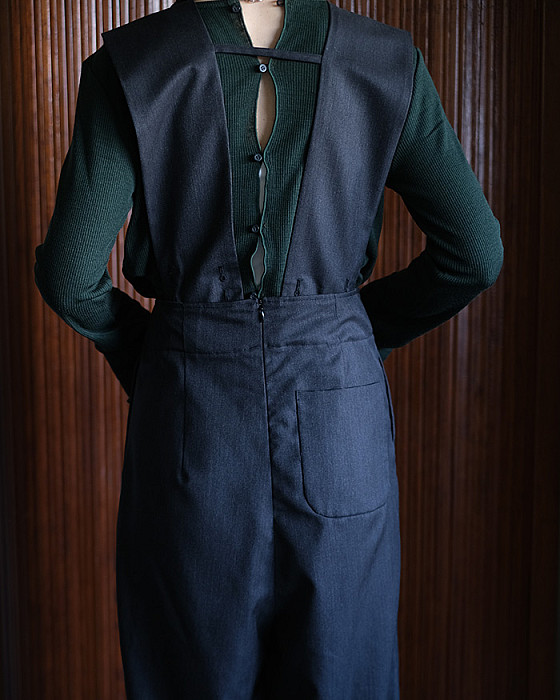 前後ろ反対に着用できるのでスタイリングの幅が広がる一着。