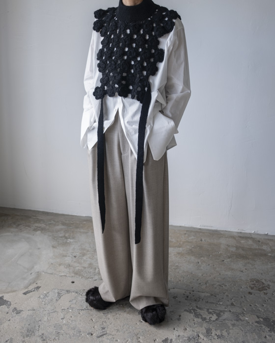 ワードローブに彩と個性を添えてくれる特別な一着。ハンドニットならではの表情がモードなスタイリングに新鮮をもたらし着こなしの幅を広げてくれます。
