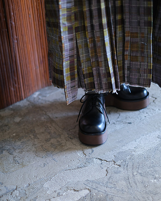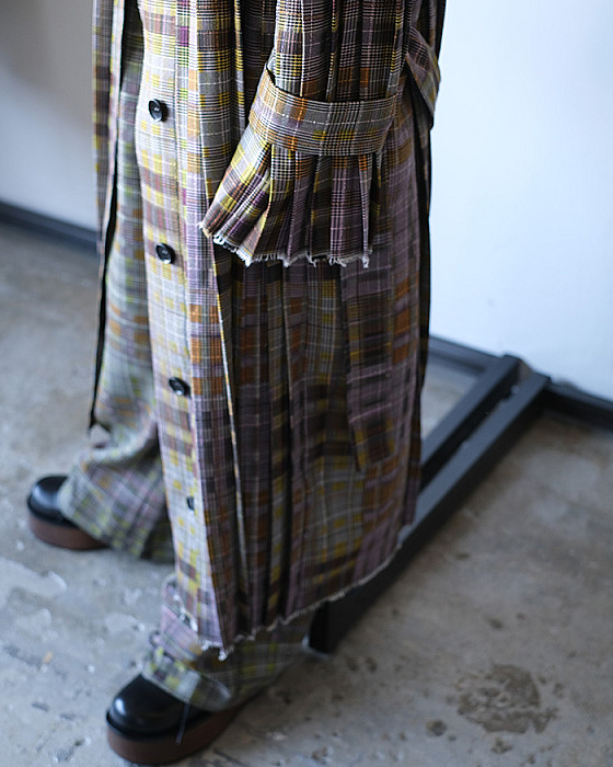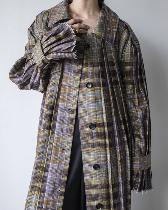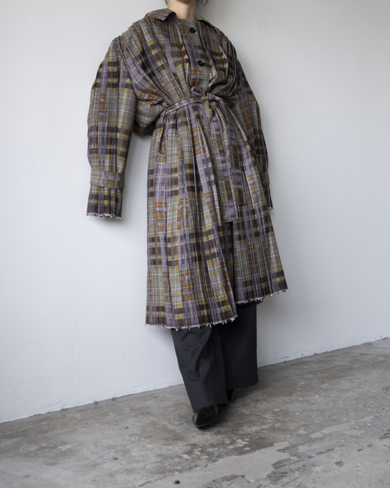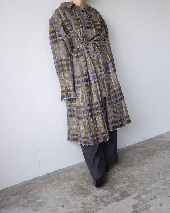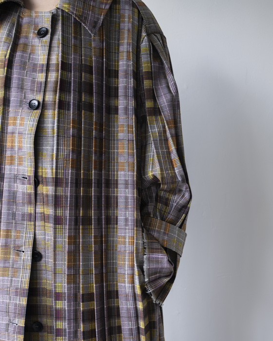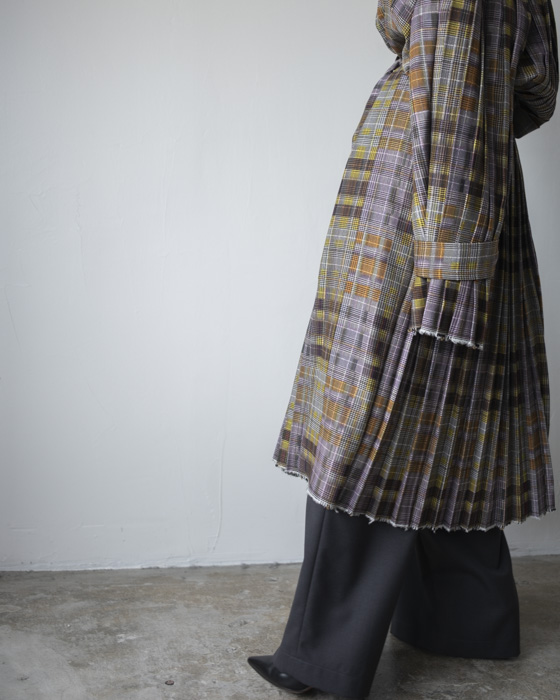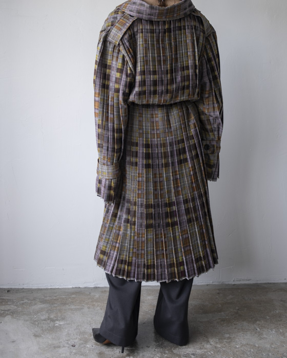 チェックの生地をプリーツ加工しているため、オーセンティンクなチェック柄も個性的にJULIAらしい色の配色も魅力的なスペシャルな一着。プリーツは最新技術により消えることのないためシワにもなりづらくなっております