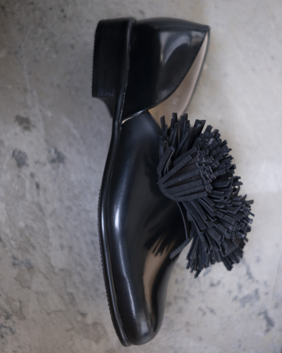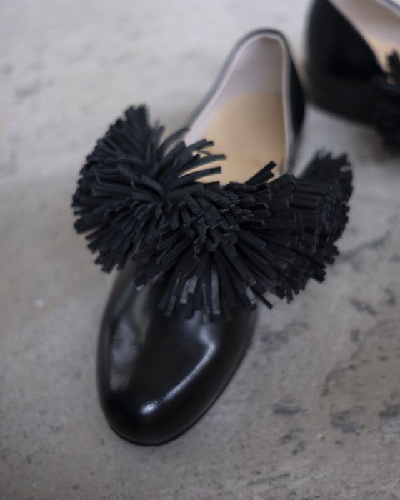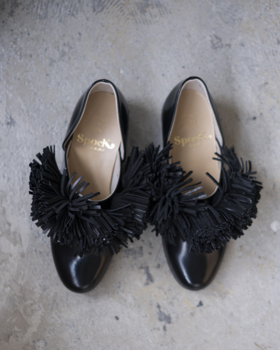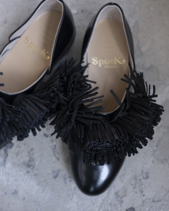 crinkle crinkle crinkleらしい、ハンドワークによるレザーのフリンジをフロントに飾り付けるという、エクスクルーシブな「スポックシューズ」となりました。