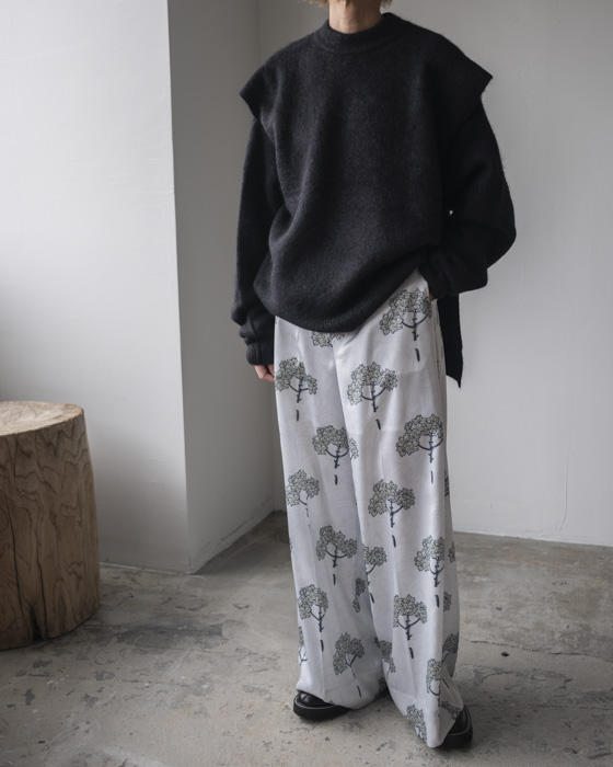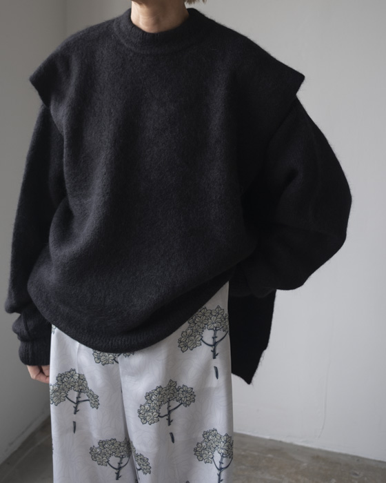 アルパカブレンドの糸に起毛をかけたギミックニット。