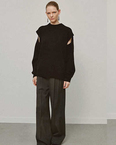 ノースリーブに大判のマント様なデザインをドッキングした存在感のあるデザインは、リラックスムードを叶えエフォートレスな印象に。
