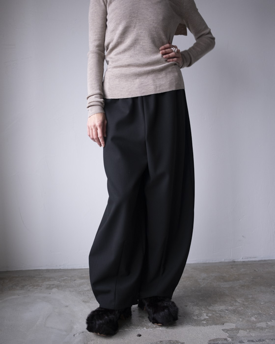 立体的なラウンドシルエットが体型をカバーしつつスタイリングにポイントを持たせてくれるパンツ。