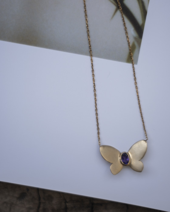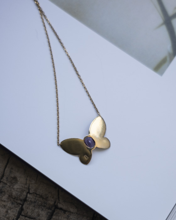 どこからともなく現れ、ひらひらと自由に舞う姿で優しい波紋を広げていく蝶をモチーフに作成したチョーカー。