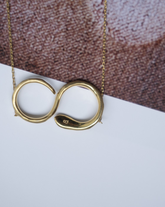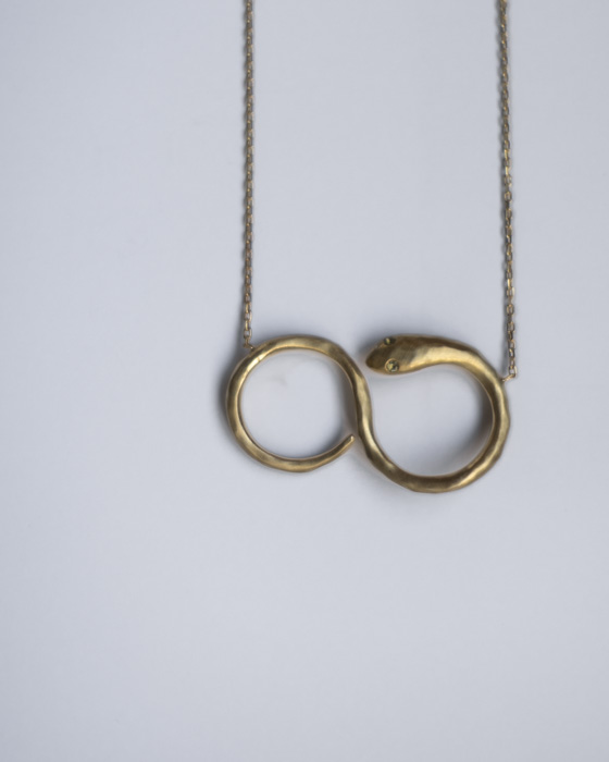 洋の東西を問わず、古来から人々に大切にされ再生や無限、繁栄を象徴し、クリエイティブを授けるといわれる神聖な蛇をモチーフに8を描くネックレスを製作。