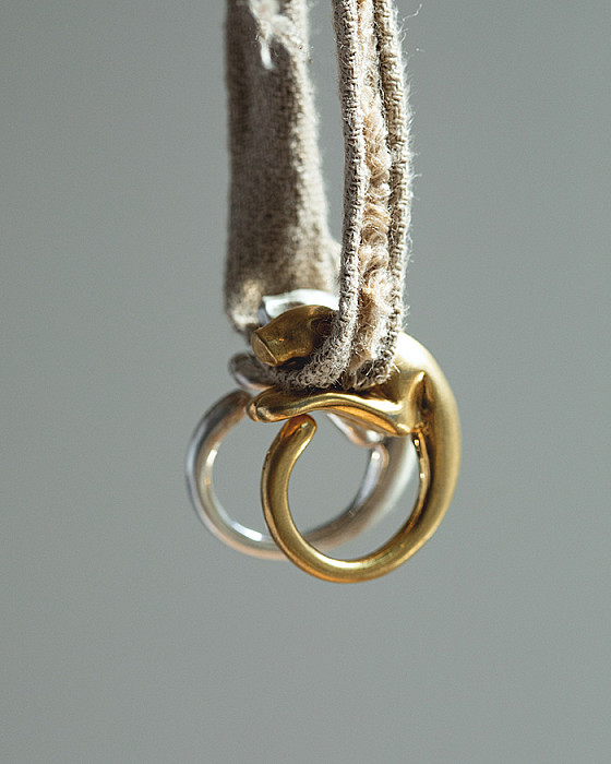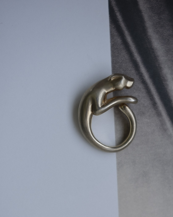 サバンナを駆ける、しなやかで孤高なネコ科動物をモチーフに製作したリング。