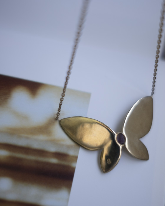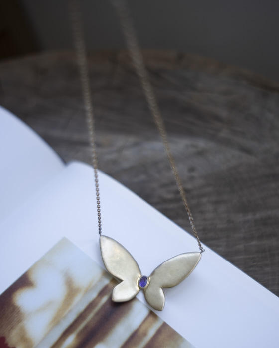 どこからともなく現れ、ひらひらと自由に舞う姿で優しい波紋を広げていく蝶をモチーフに作成したチョーカー。