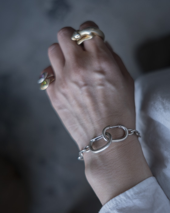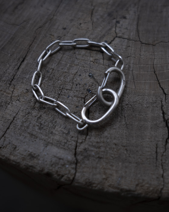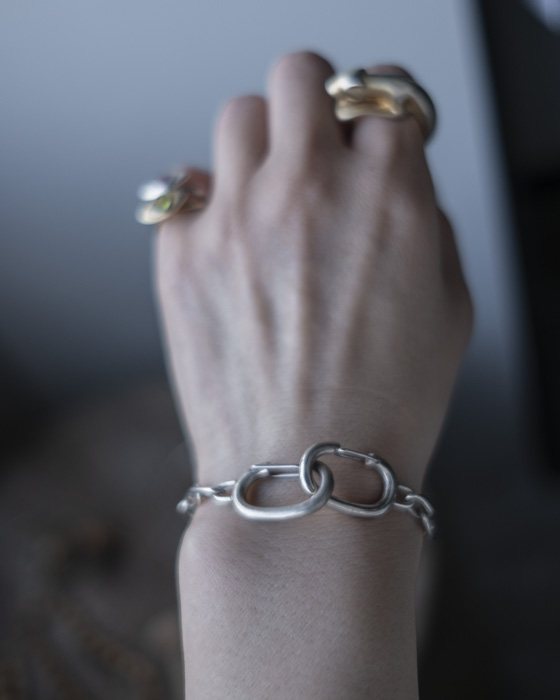 8UEDEオリジナルのナスカンを2つ重ね、マットとツヤのテクスチャーで8を表現したブレスレット。