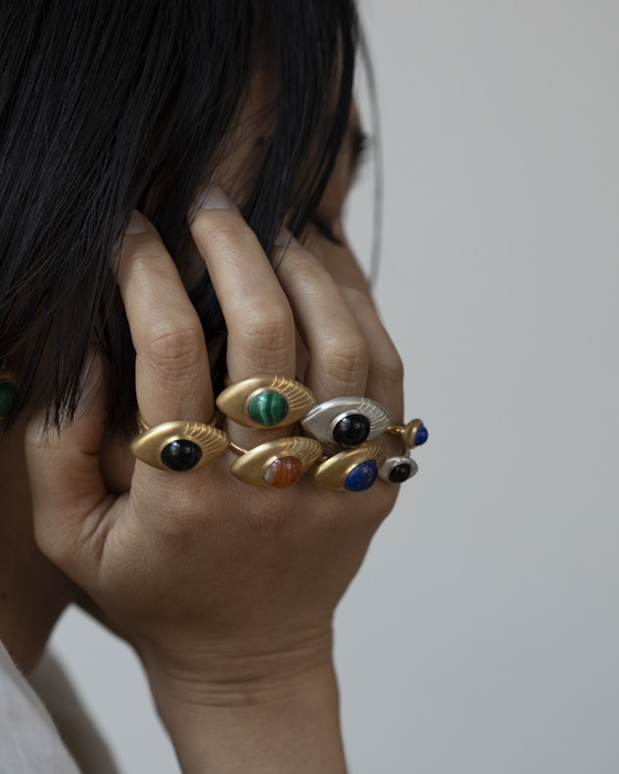 大きく目を見開き、物事の本質を見極め、内にある光を世界に投影する事で出来る自らの眼を表現したリング