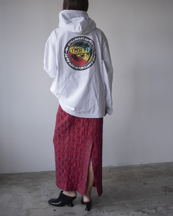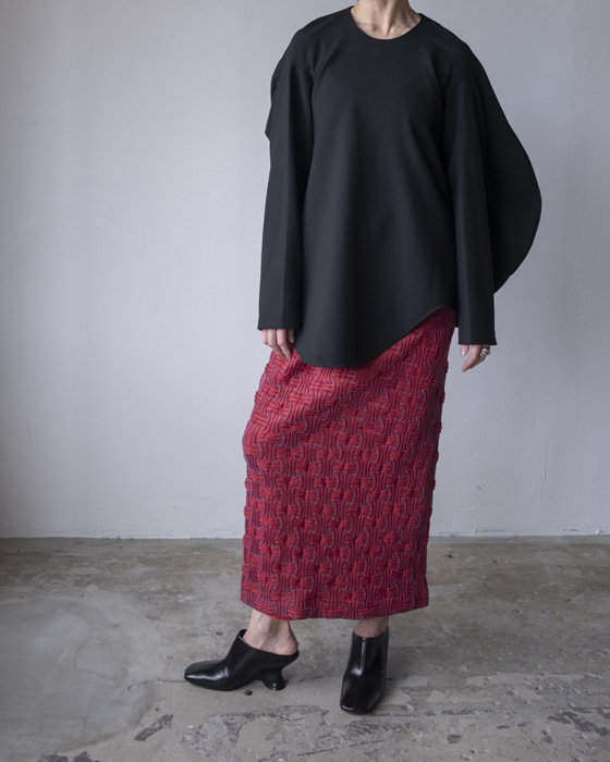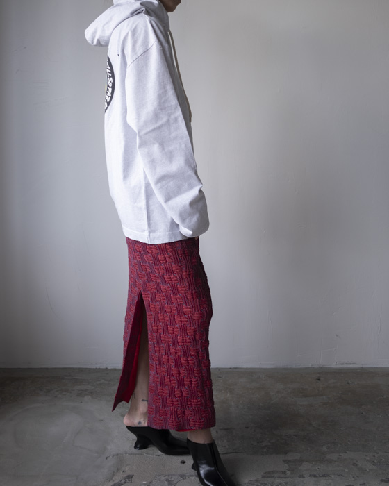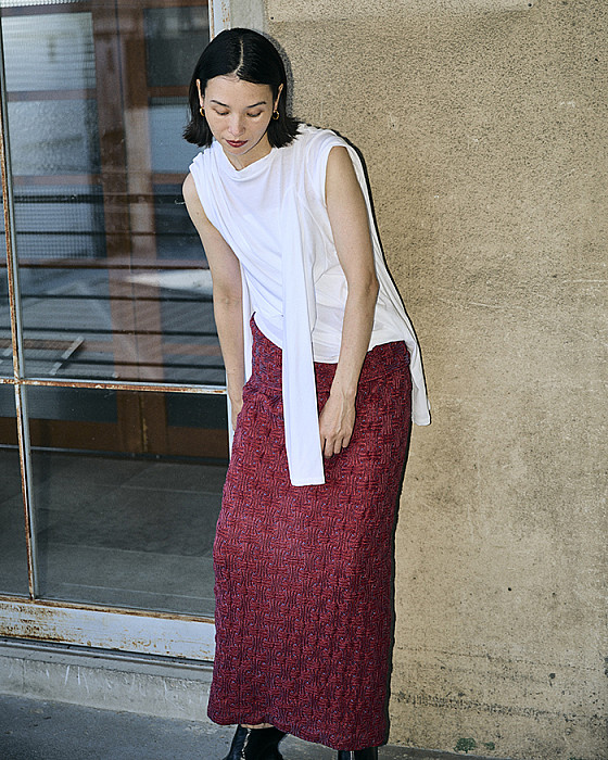 クールなロングスカート。タイトすぎず、またフレアではないのでエレガントにならずTシャツにカジュアルシンプルに合わせてサマになるさカートです。シーズンレスでお楽しみください。
