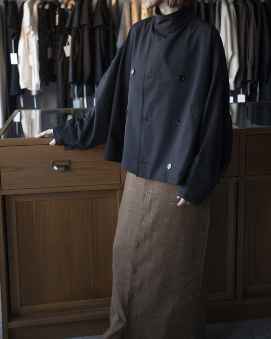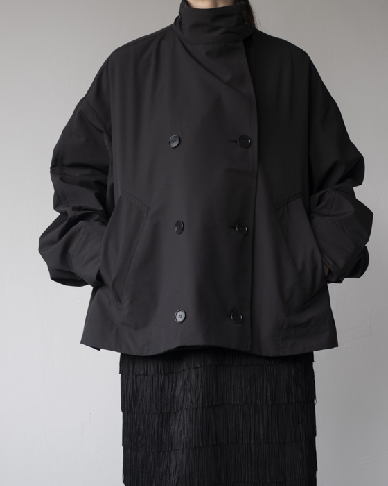 ・ウールポリアミド生地を使用したスタンドカラーロングコート