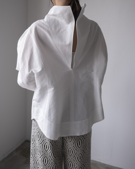 折紙の着想を得てデザインされた、コットンリネン素材のブラウス。