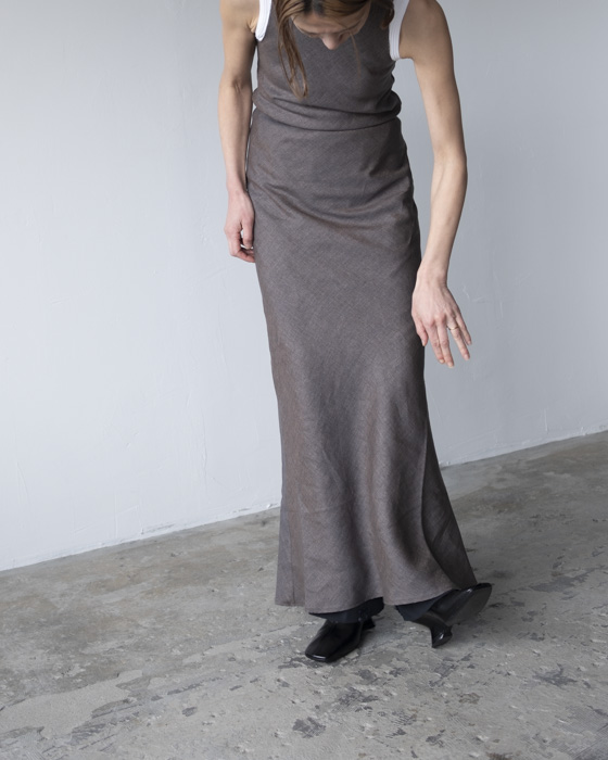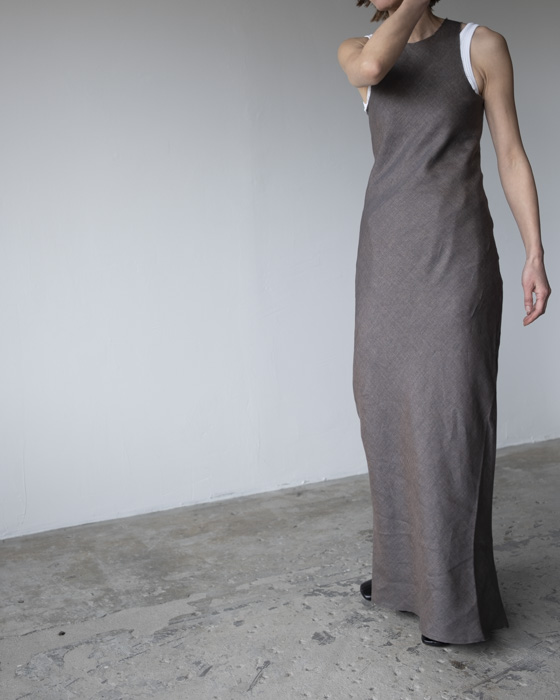 セミシアーなリネン素材を使用した、軽やかなマキシドレス。