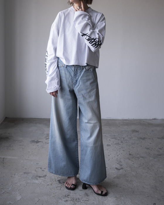 深めのBLUEのUSED加工にベージュを重ねた、独特の色合いが魅力の一本です。