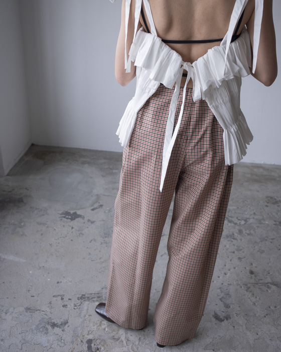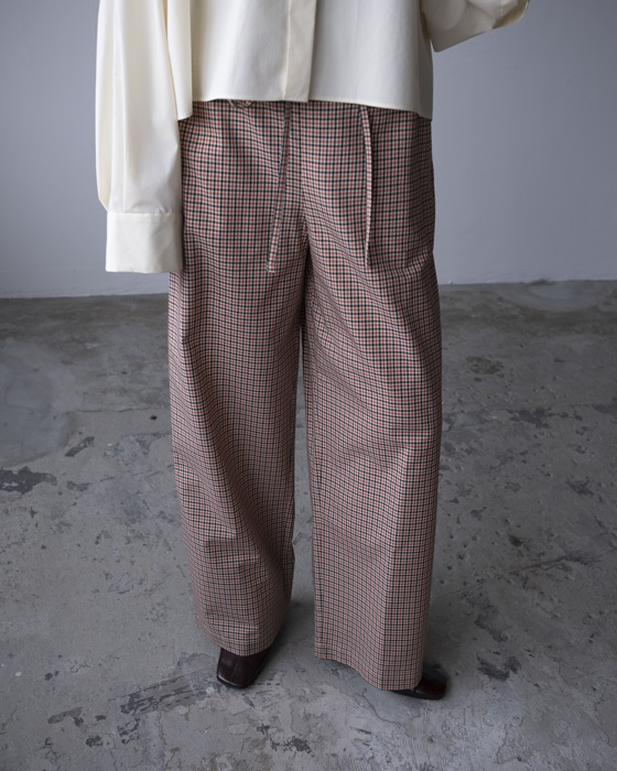 パジャマパンツをベースにしたイージーパンツ。透け感がない高密度な素材ながら、肌あたりが良く、素材の良さを体感していただきたい1着です。