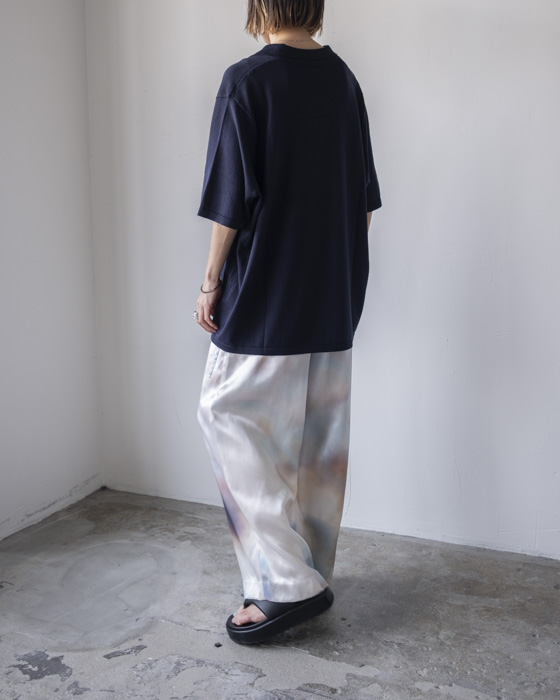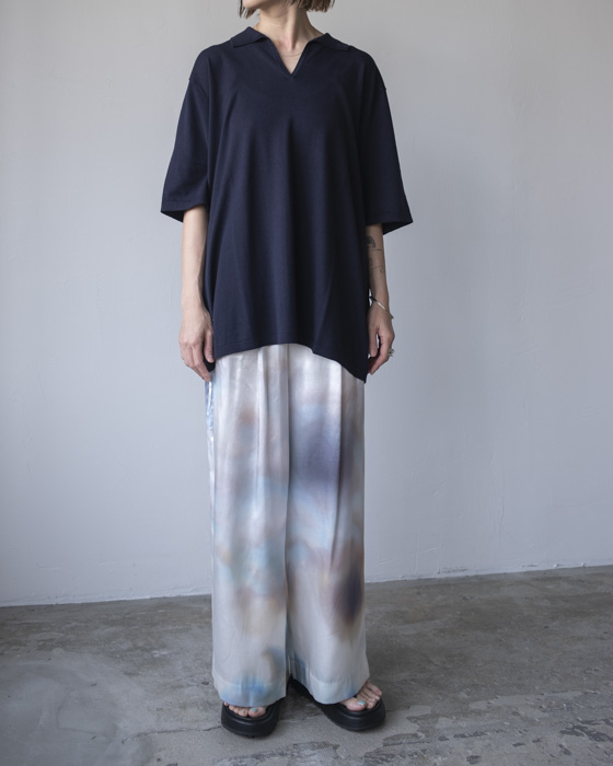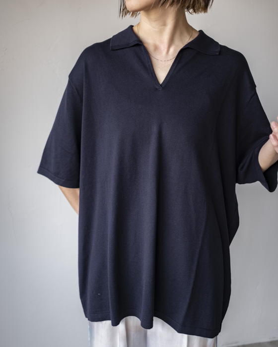 シルクの光沢を活かしながらもデイリーユースしやすく、またハイゲージでとても繊細に仕上げています。付属のないハイゲージのスキッパーニットは夏場に1枚で着用した際にも心地よく、ハイゲージで仕立てているのでシャツとのレイヤードもおすすめです。
