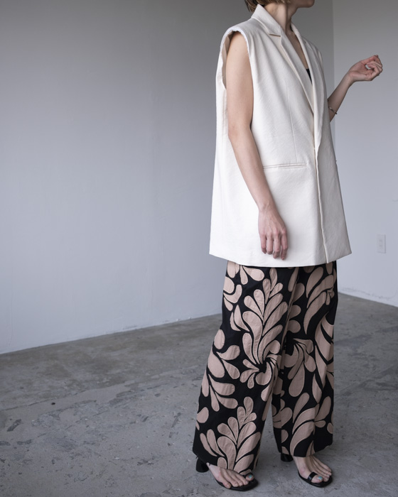 カットワーク刺繍を全面に施した素材を使用。