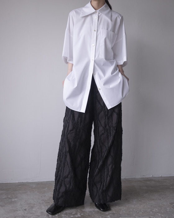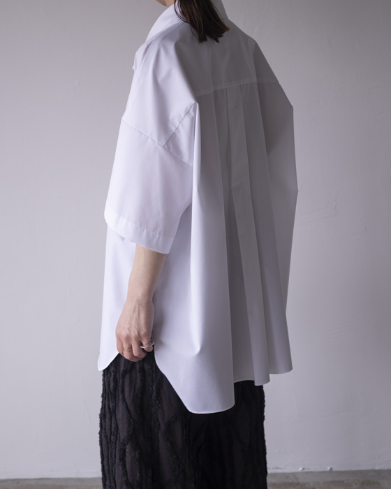 1枚でもレイヤードにも使いやすい5分袖のシャツ。
