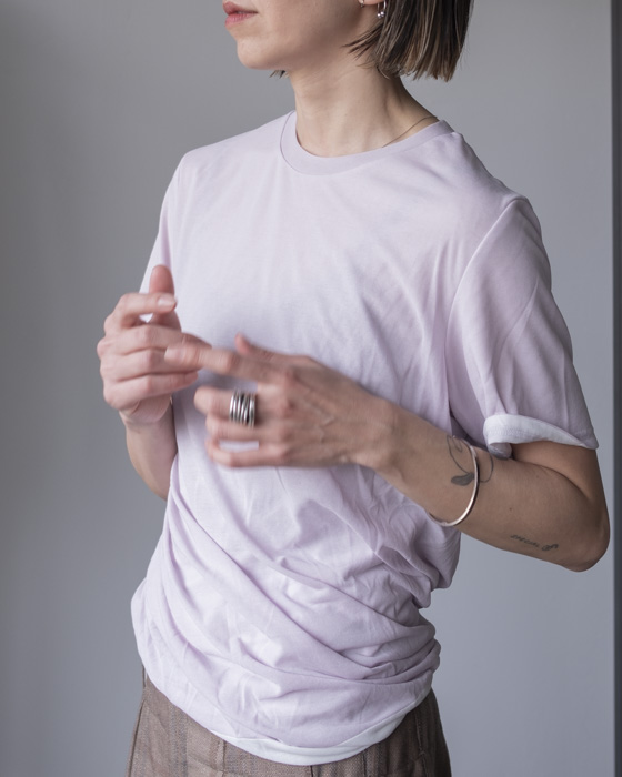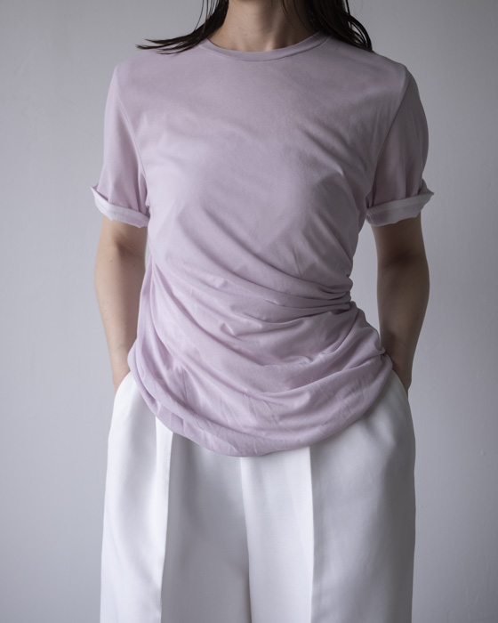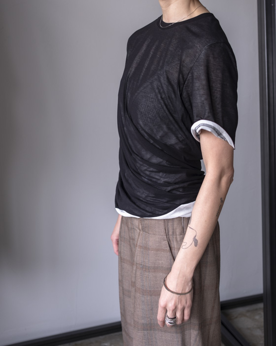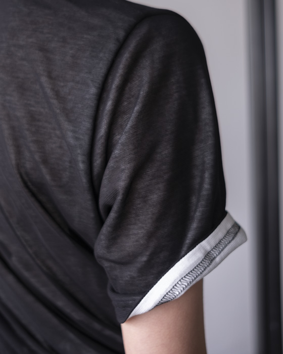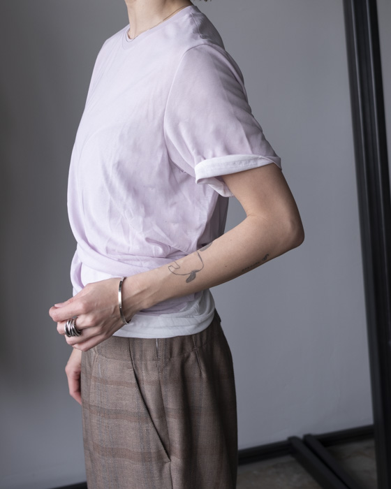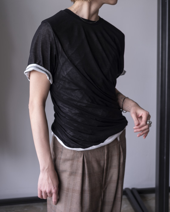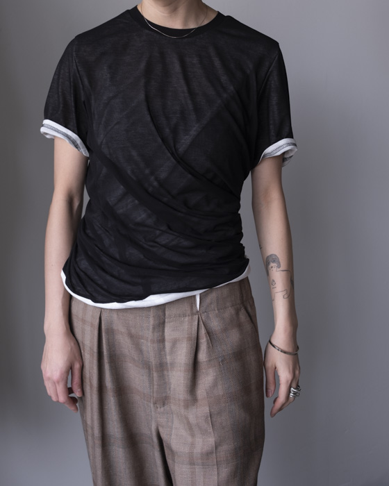 シアー素材でデザインし、インナー側のツイスト感もわかるようなデザインTシャツ